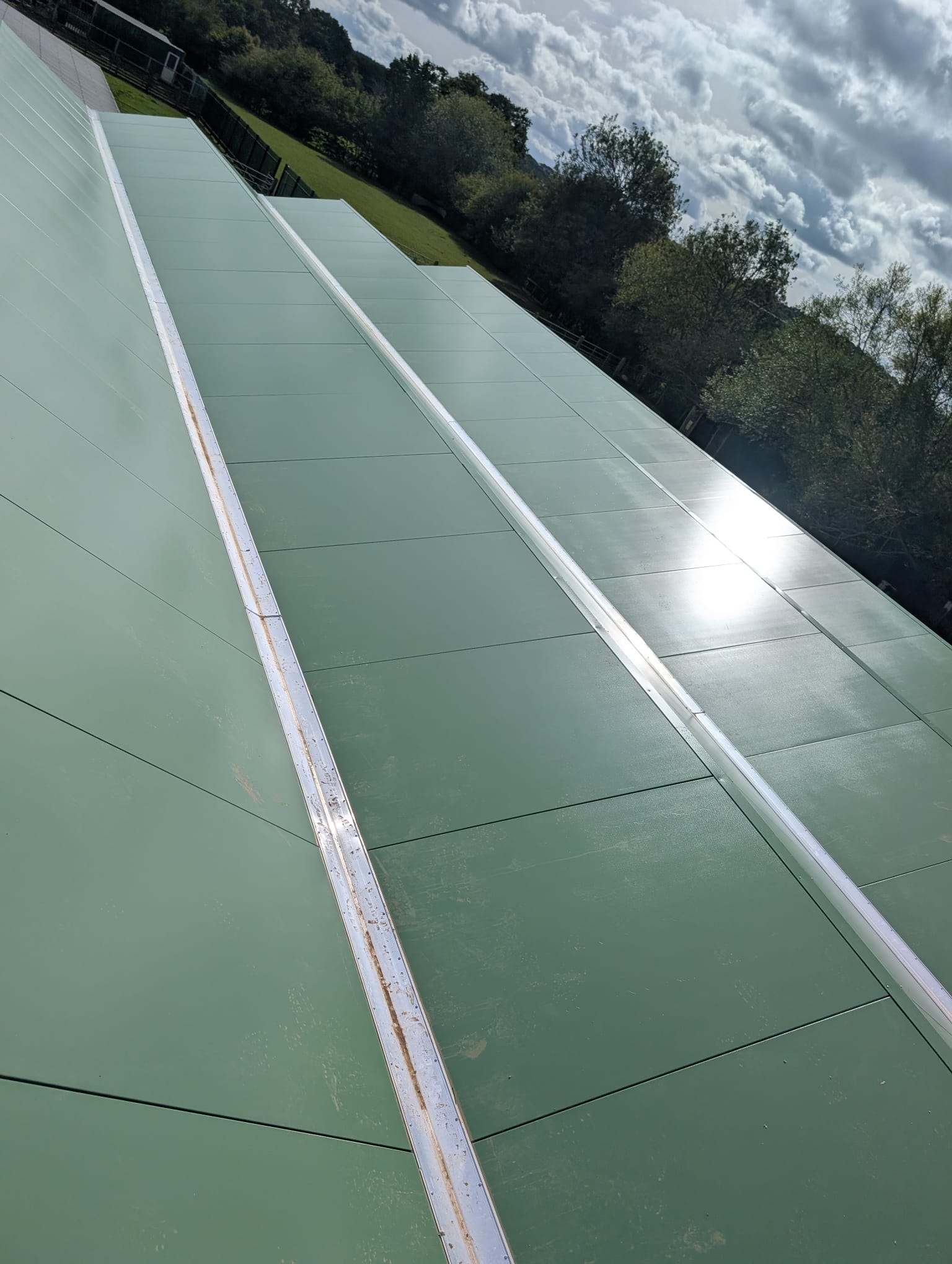 The new cladding system features 60mm thick SAB flat Reesda Green composite panels, designed with rubber seals between each panel to ensure a fully watertight finish. .